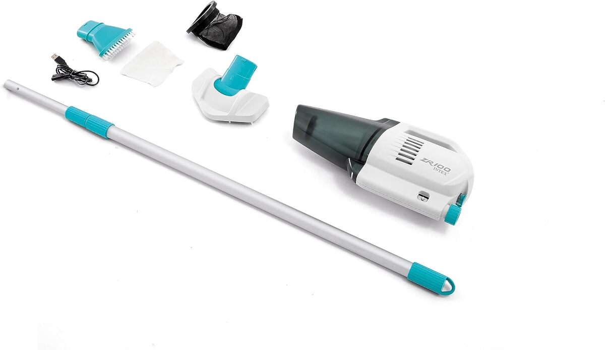 Пылесос заряжается от USB кабеля (входит в комплект) и может работать без подзарядки 100 минут. В комплект входят две сменные насадки, которые позволяют очистить стенки и дно бассейна от любой грязи. Данный пылесос идеально подходит для владельцев бассейнов с недостаточно мощным фильтрующим насосом.